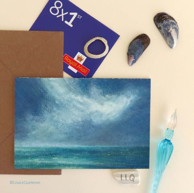 One for all the sailors and storm lovers storm cloud over the turquoise ocean art card. Reproduced from my original painting.
