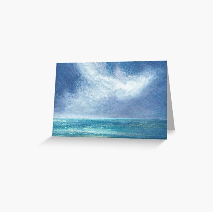 One for all the sailors and storm lovers storm cloud over the turquoise ocean art card. Reproduced from my original painting.