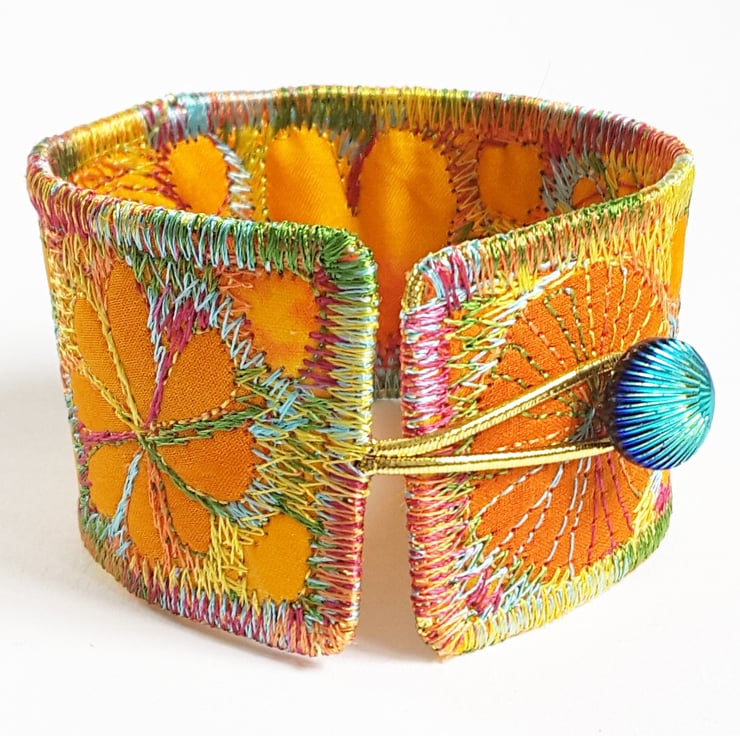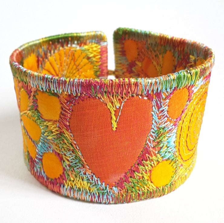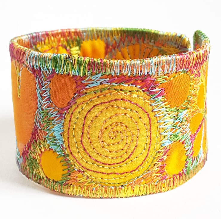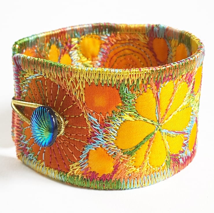 This is a handmade machine stitched fabric Stiched Silk Cuff or bracelet.