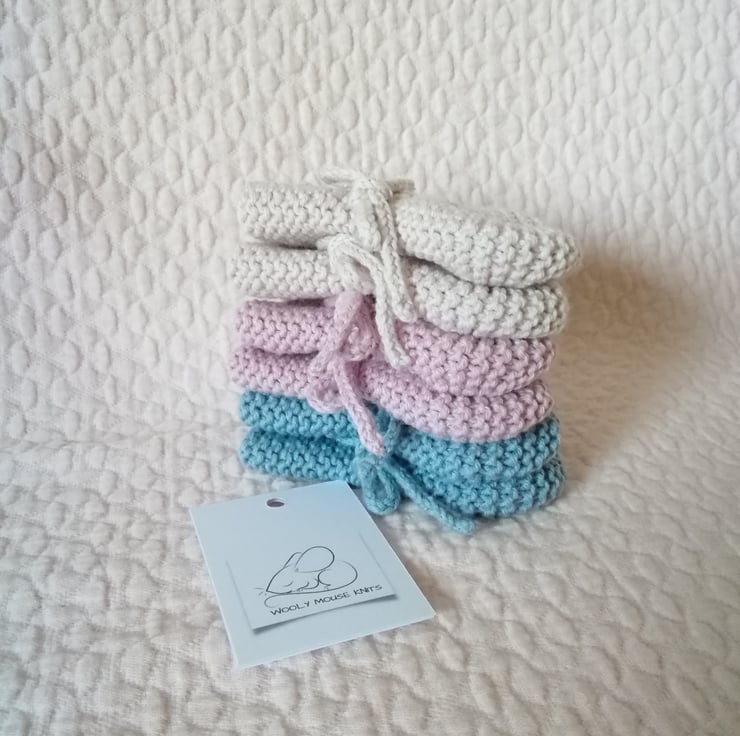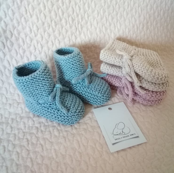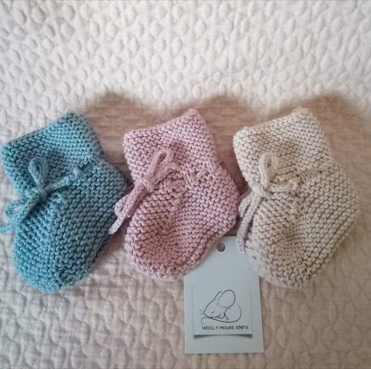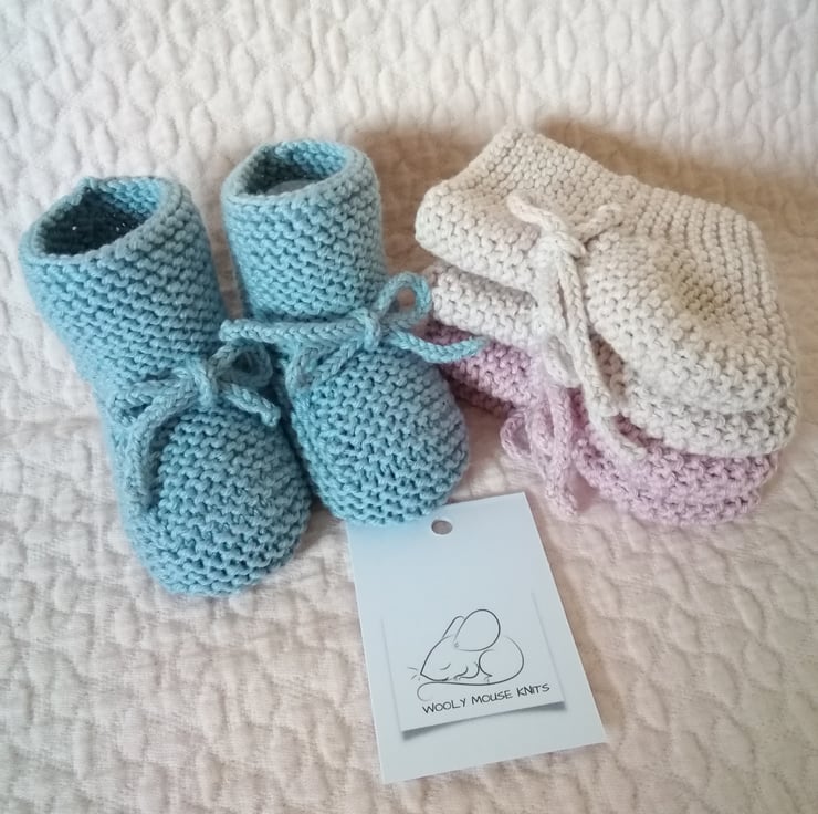 These are knitted in 50%cotton 50% merino wool and are ideal for the warmer months , would make a beautiful new baby gift.