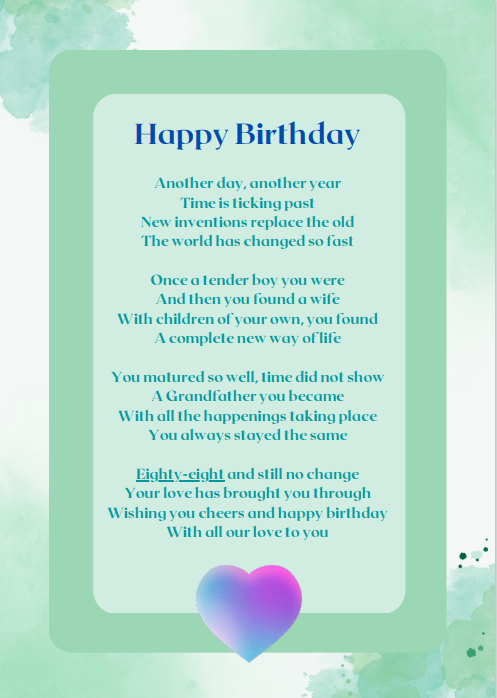I wrote this poem for my Grandads 88th birthday, many moons ago