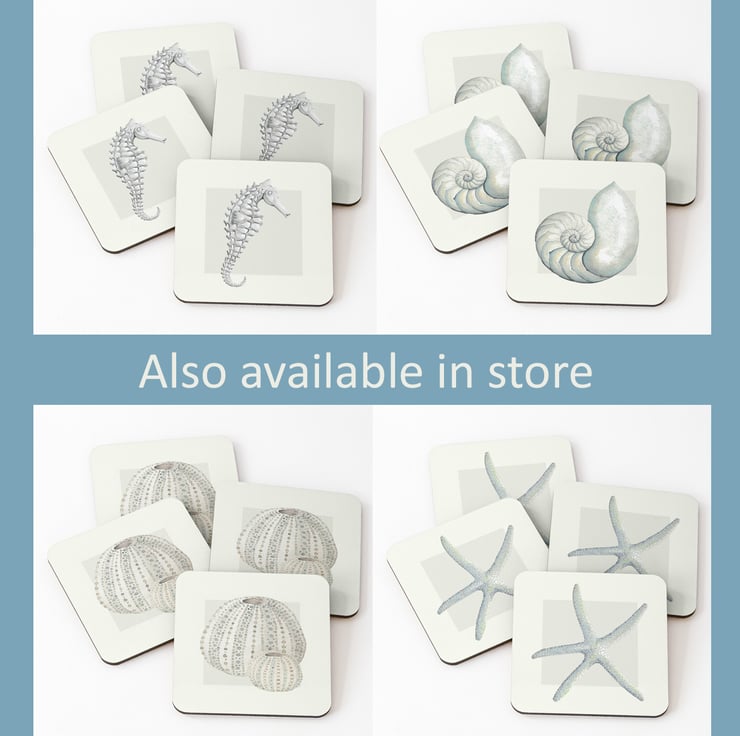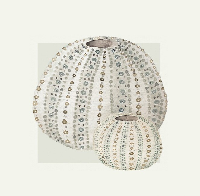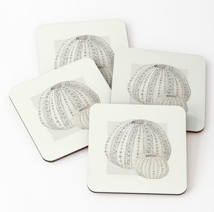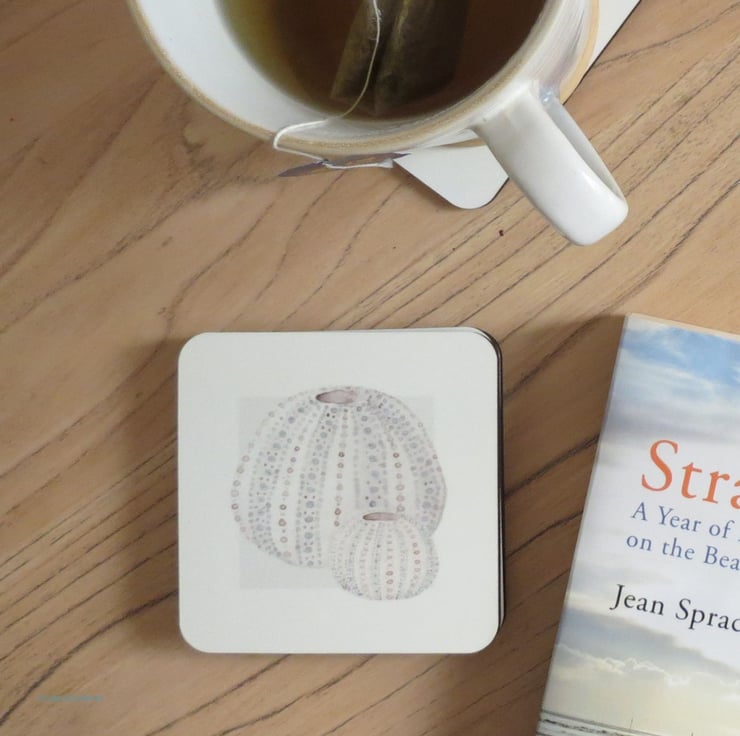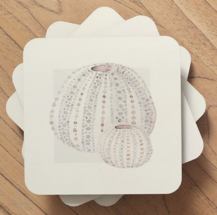 From my Coastal home collection - sea urchin design coaster in cream and neutral shades reproduced from an original watercolour painting.
