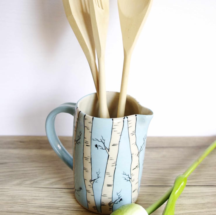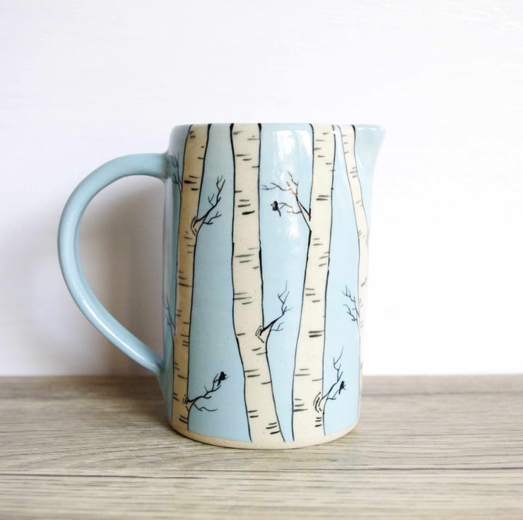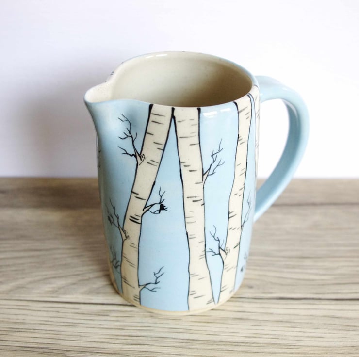 These jugs are hand-thrown on a wheel using earthstone clay and glazes fired in an electric kiln.