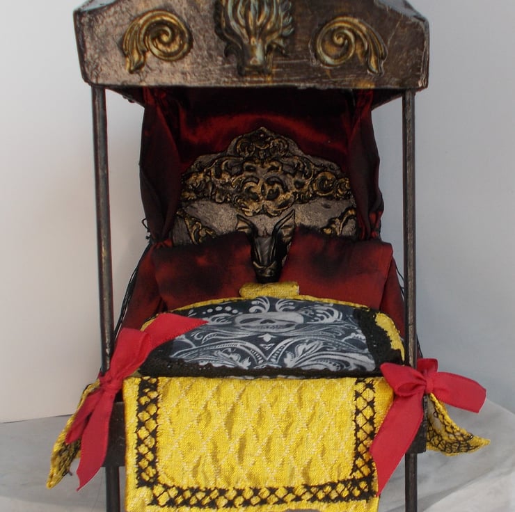 1:12 Dolls House Bed for a Gothic, Steampunk Horror scene