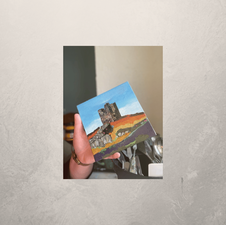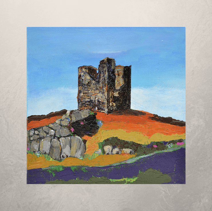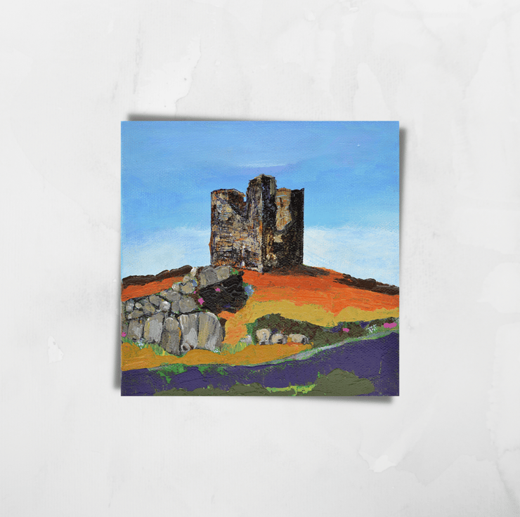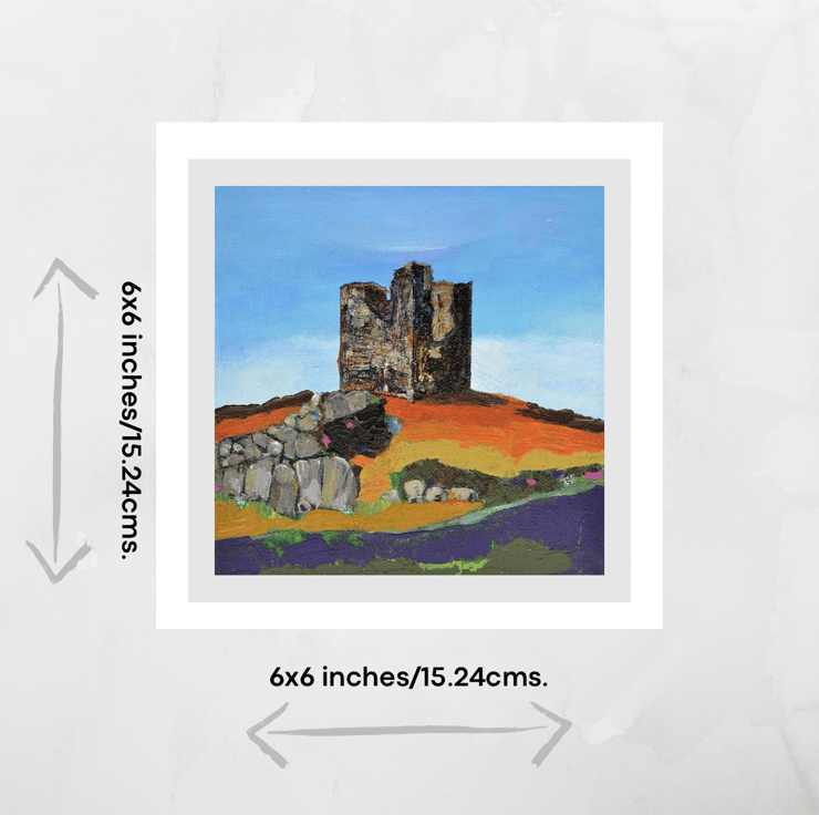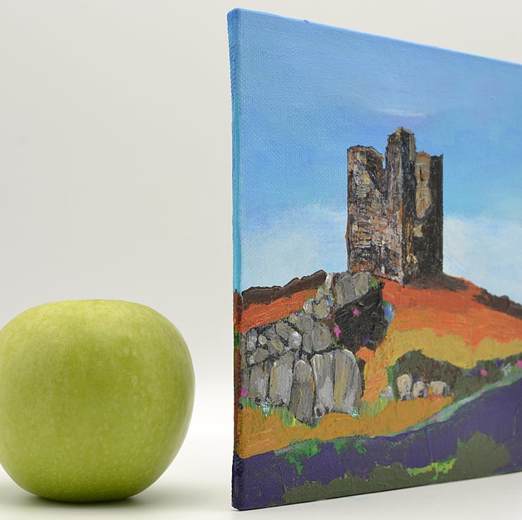 (031) This is a small canvas depicting Castle Varrich which is located near the village of Tongue in the north of Scotland. This would make an ideal gift for any occasion.
