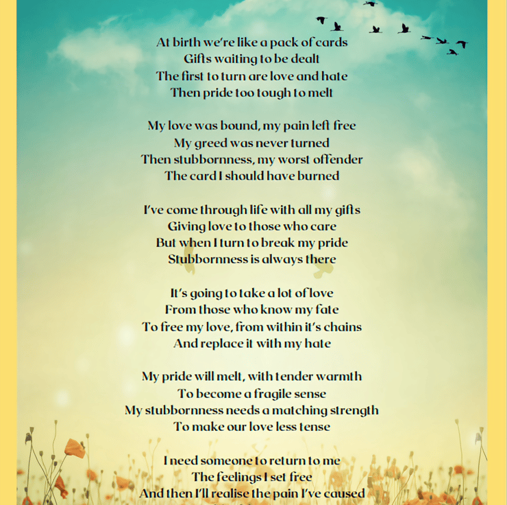 An original poem about our strengths and weaknesses and how we need friends, family and lovers in our lives that compliment them.