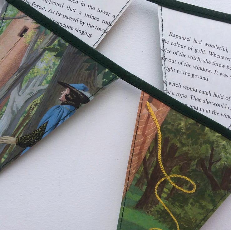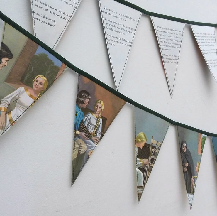 This is a long length of paper bunting, made from an entire vintage Ladybird book - 'Rapunzel'.