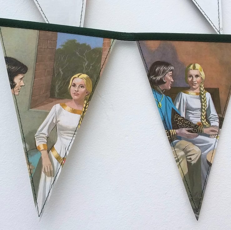 Ladybird books and listening to stories was a huge part of my childhood. If you grew up in the UK during the 1960's and 1970's, then you were sure to have experienced these books at home or at school. I have turned what was once a loved and and tatty book into bunting and given a new life to some wonderful illustrations.