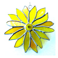 This is a stained glass suncatcher handmade using the Tiffany copper foil technique.