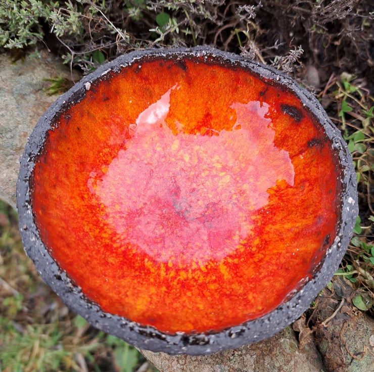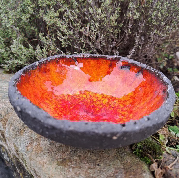 This is one of my favourite pieces to make. I hand build these bowls with the black chunky clay that I love working with. The inside is glazed with a vibrant glaze, giving a great contrast to the black,unglazed body of the bowl.
