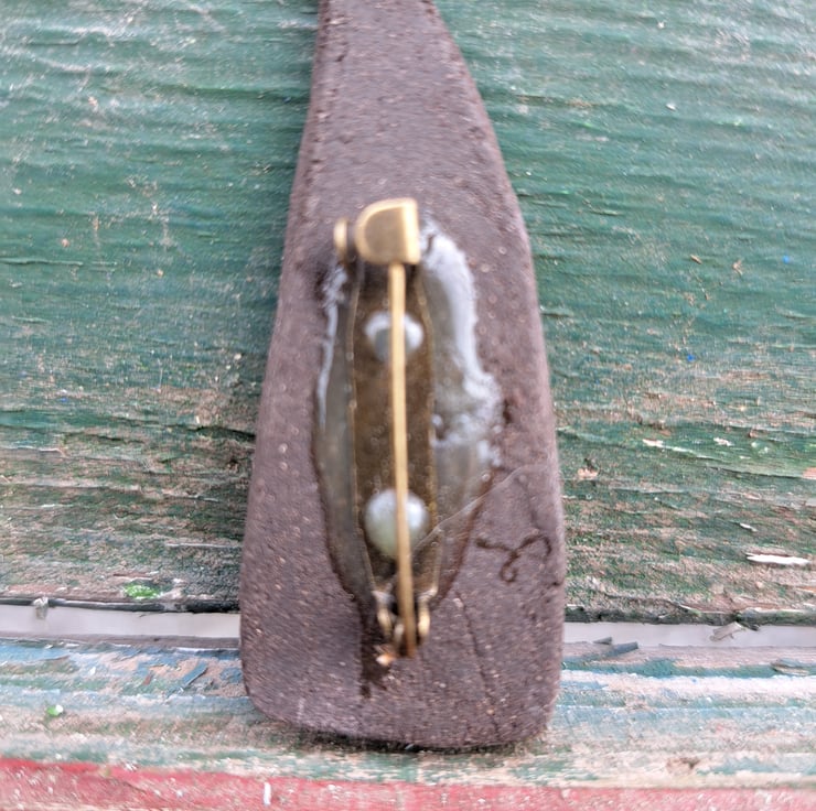 My Brooches all have a securely attached bronze pin on the back of them.