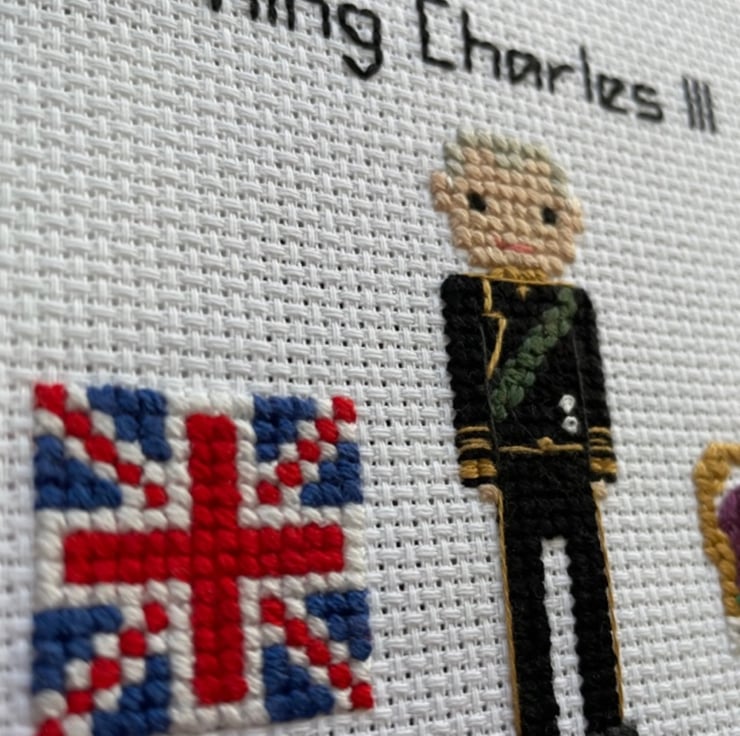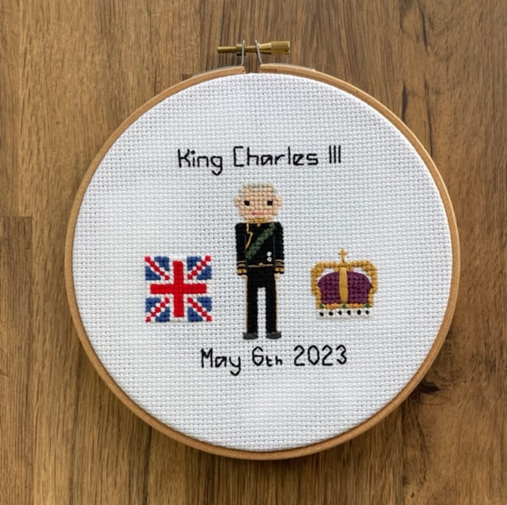 Commemorate the coronation of King Charles III with this cross stitched portrait.