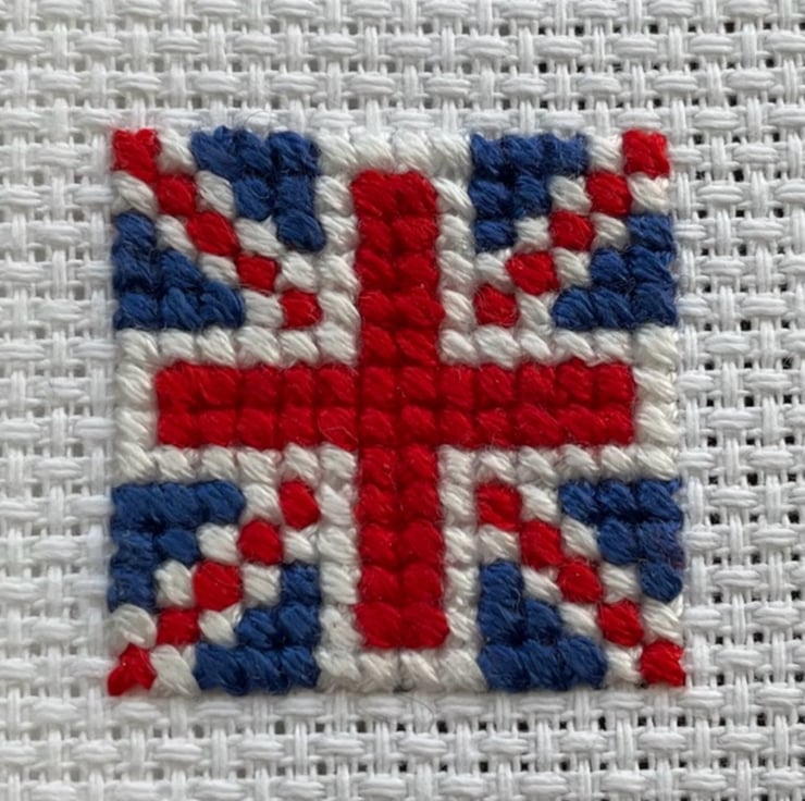 Featuring a little cross stitched King with the coronation crown, union jack flag and the date of the coronation. Made with aida fabric and DMC threads, it comes in a 6 inch hoop with ribbon for hanging.