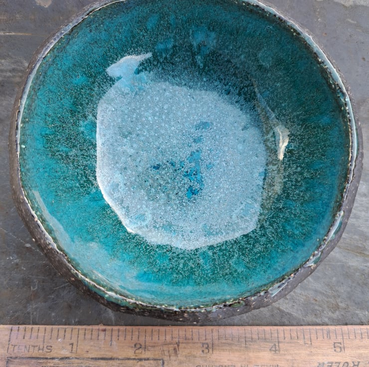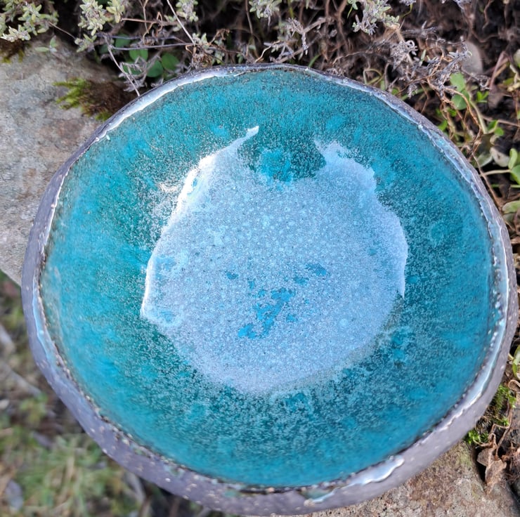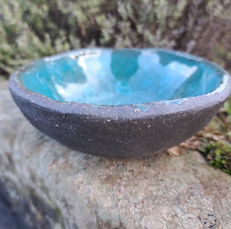 This is one of my favourite pieces to make. I hand build these bowls with the black chunky clay that I love working with. The inside is glazed with a vibrant glaze, giving a great contrast to the black,unglazed body of the bowl.