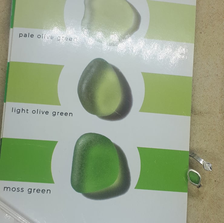 Due to the nature of sea glass and the varying thickness of the glass, it will look different shades in different lights, which is all part of its magic.