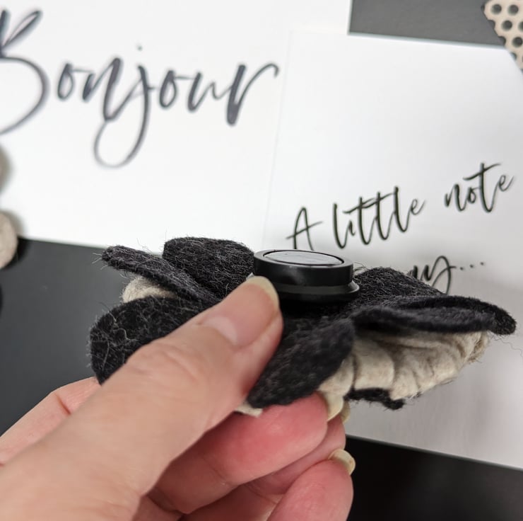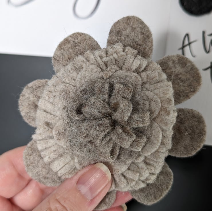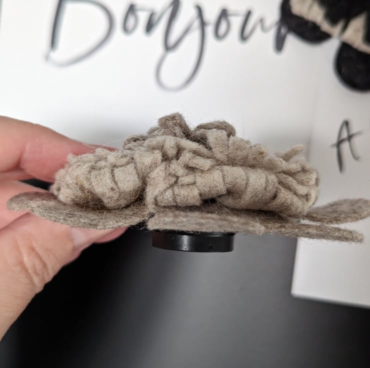 Gorgeous neutral wool felt flower magnet, layered and textured. would suit any decor.