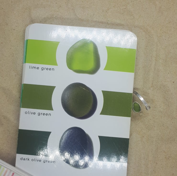 Due to the nature of sea glass and the varying thickness of the glass, it will look different shades in different lights, which is all part of its magic.