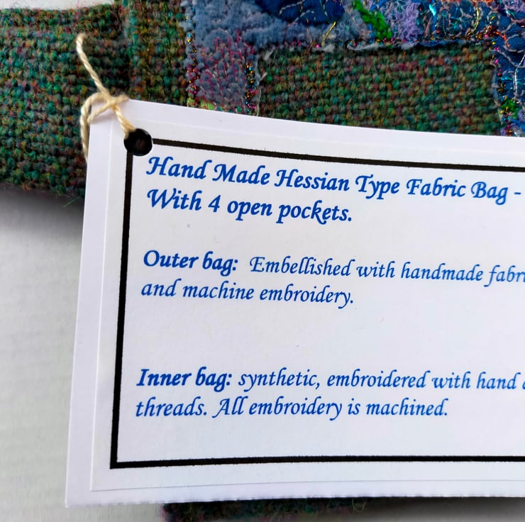 This unique handmade bag features handmade textile art and 4 inner pockets.