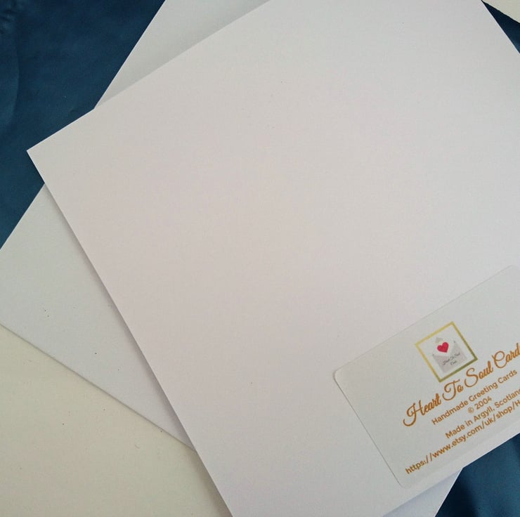 CARD DETAILS: Top Quality Cream Card 6"x 6" (15.24 cm x 15.24 cm) with matching cream envelope in a cellophane bag.