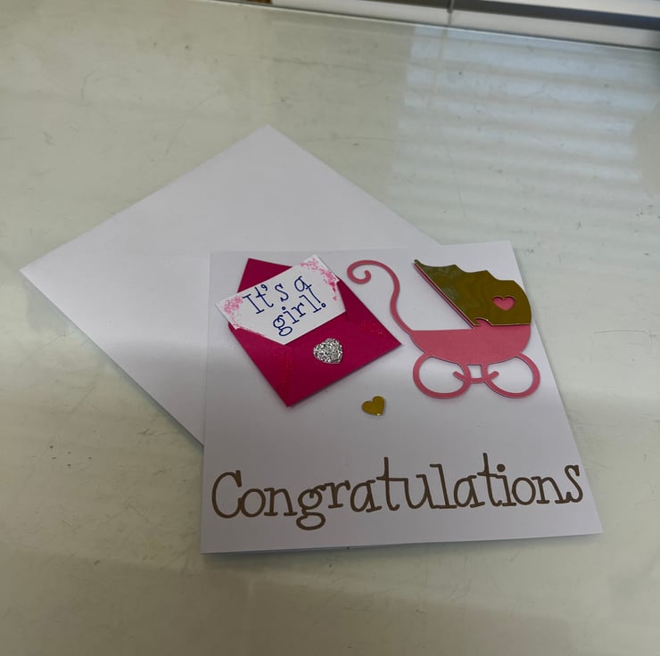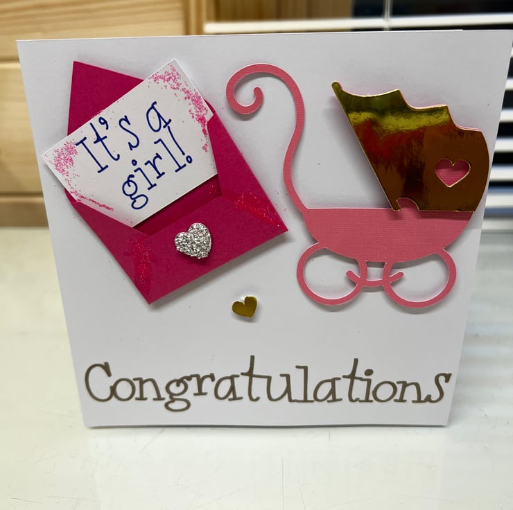 Made with Pink/Blue, White & Gold Card, also include a Silver Heart.
