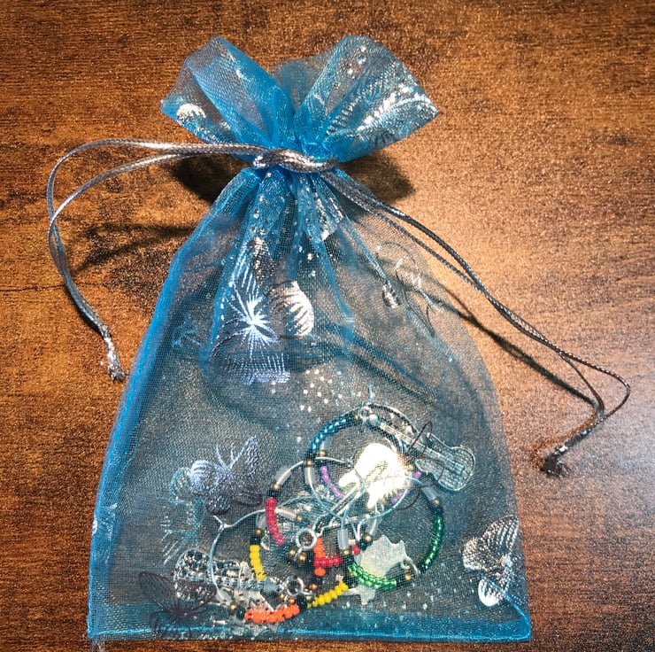 Presented in dainty blue organza bag with silver butterflies.