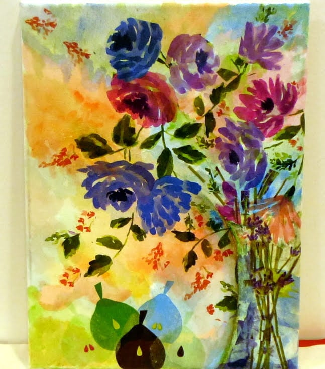 This mixed media flower and pears canvas was created in 2018 for my art hub exhibition.