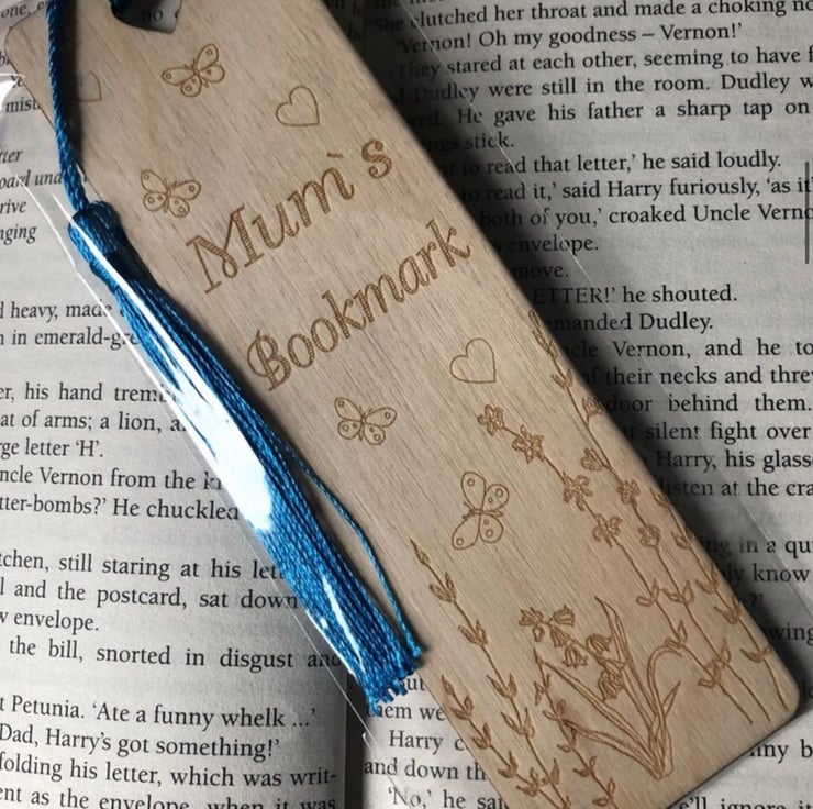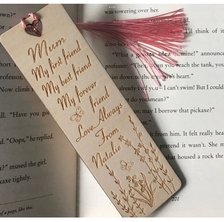 Lovely quality wooden bookmark, laser engraved and personalised with your choice of name/ phrase or quote, please contact me prior to ordering if you require a specific phrase to ensure the wording will fit, also if you require a specific illustration. Supplied with tassel, please specify your colour choice, if not a random colour will be supplied.