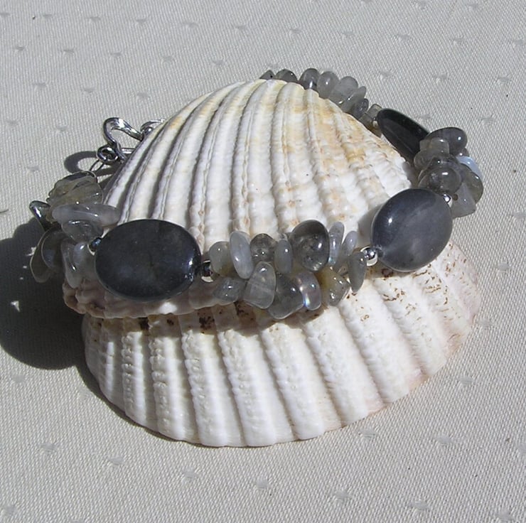 Grey Tourmaline & Labradorite Gemstone Crystal Bracelet