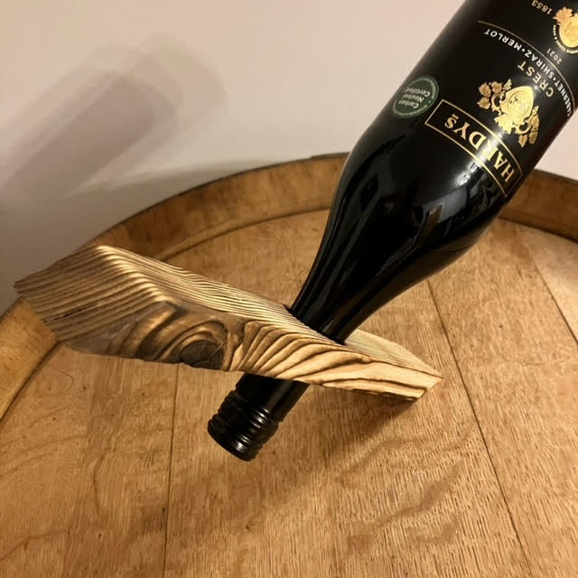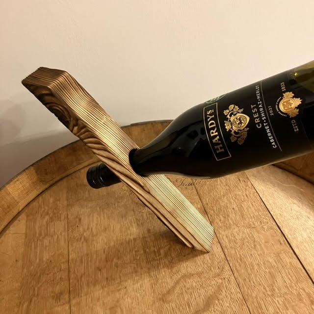 Balancing wine bottle holder with a beautiful rustic feel.