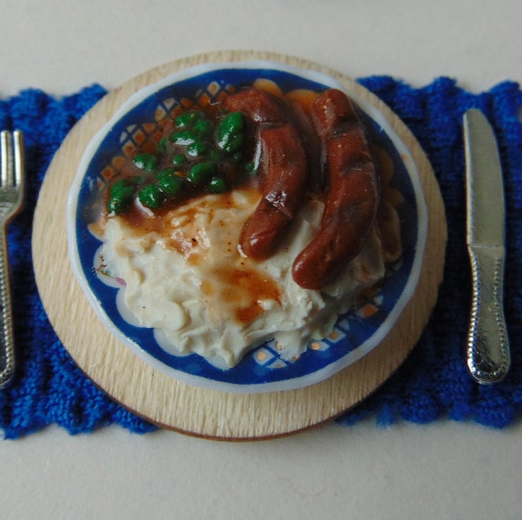 Bangers and mash comfort food is at it's best with lashings of gravy, a good book, glass of wine and why not add a vase of flowers and a napkin.