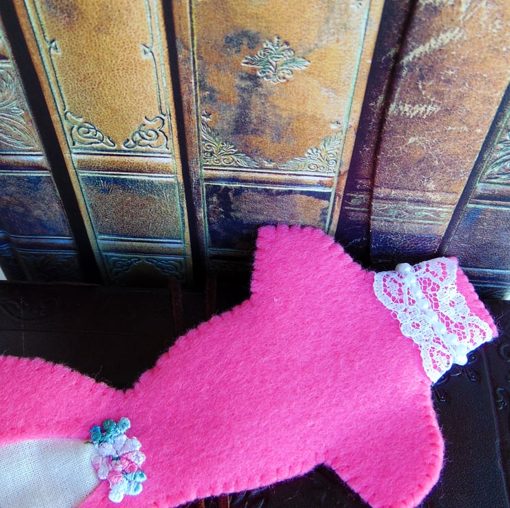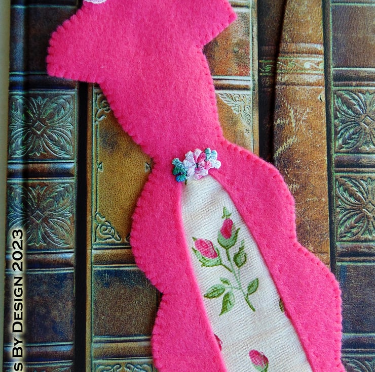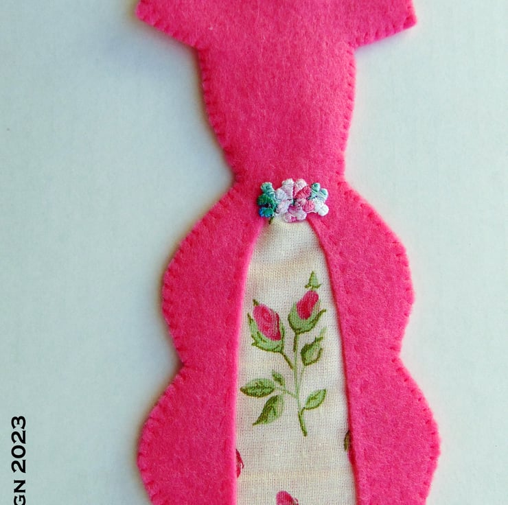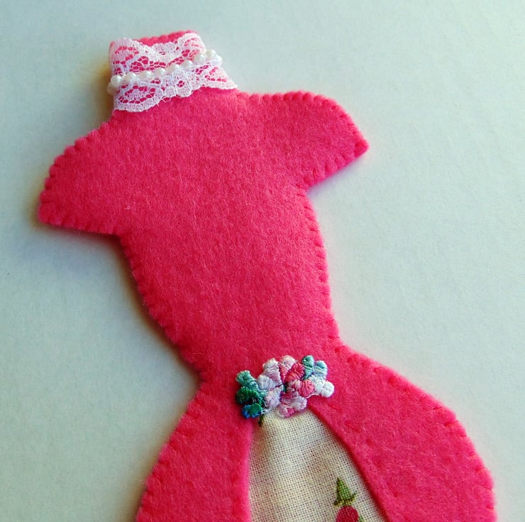 The pink felt dress has been hand cut from a template that I have designed myself.