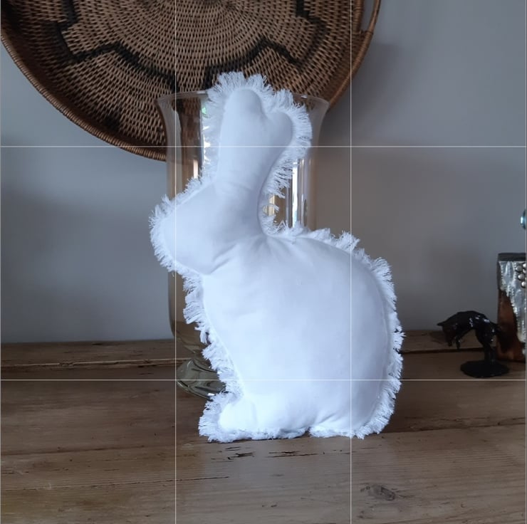 This small white rabbit pillow has the edges ragged to give it a primitive look. Made using 100% cotton with double stitched to keep the ragged fabric in place. As time goes on, more ragging will appear, but this is all part of the ragging process. It is gently stuffed using approved toy stuffing. Will make a lovely collection with the other pillow items that are available in my Folksy Shop.