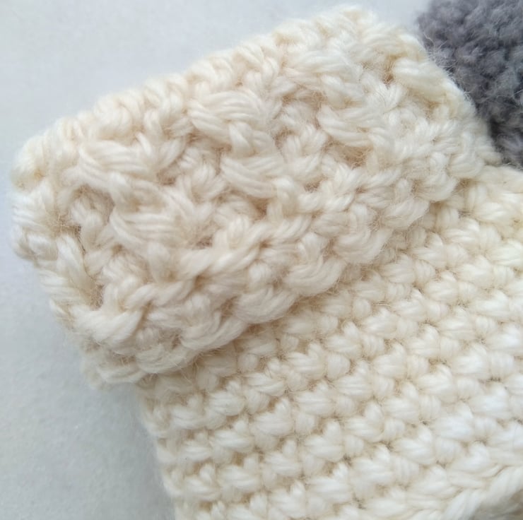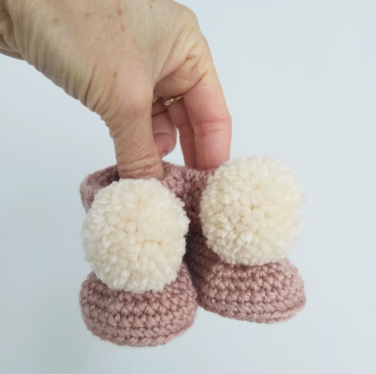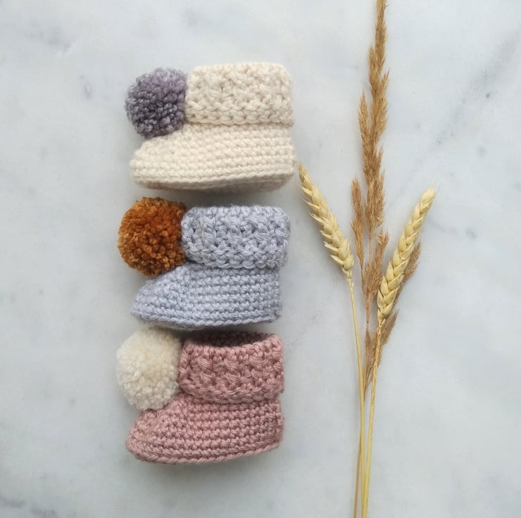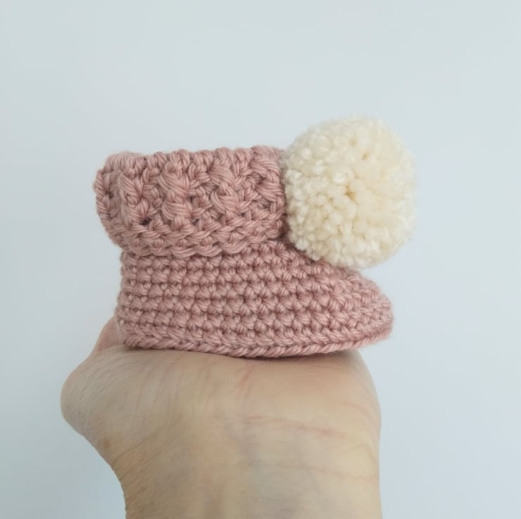 Modern cuffed style booties with a pompom.
