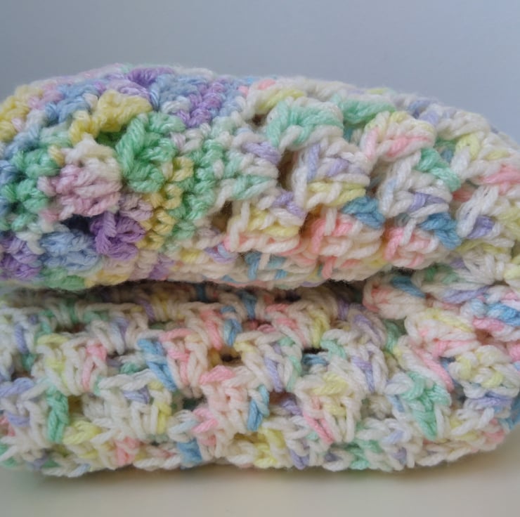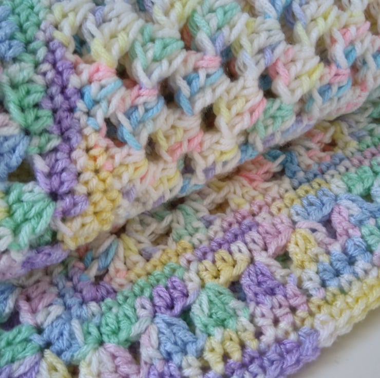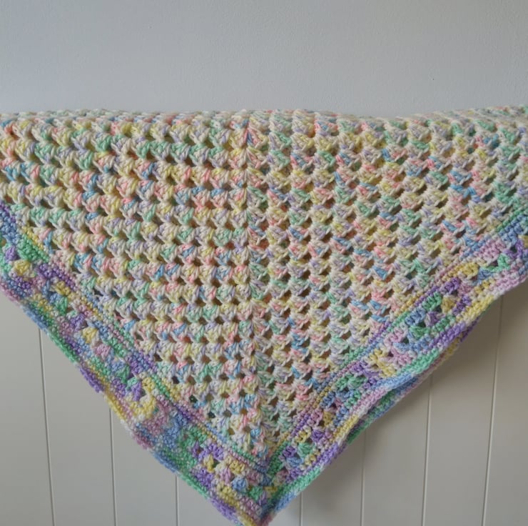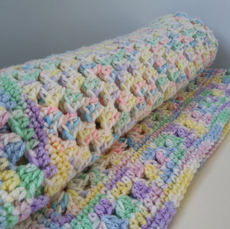 A gorgeously soft granny stitch baby blanket perfect for keeping your little one warm and cozy in a stroller/pram/buggy, car seat or Moses basket.