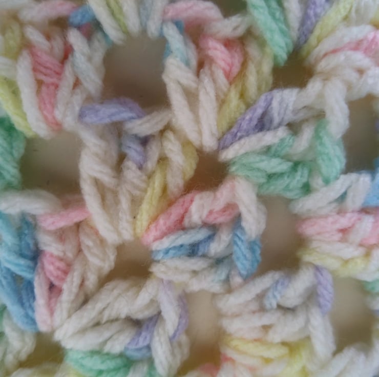 Made using 100% soft acrylic variegated baby yarn in white, blue, yellow, green and purple colours.