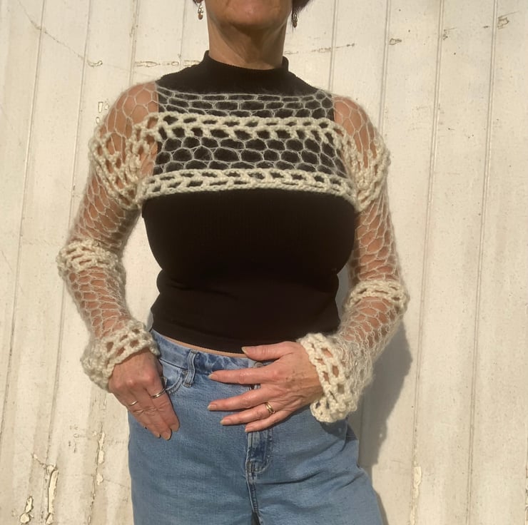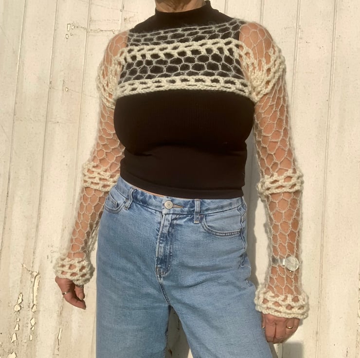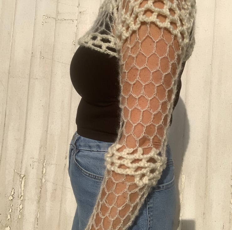 Made using chunky acrylic yarn and a fine mohair and silk yarn.