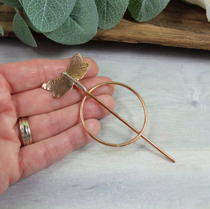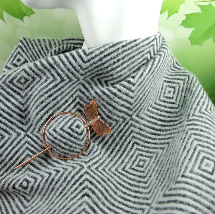 Hand forged hammered Copper Dragonfly Shawl Pin for Open Weave or Knit Shawl, Scarf, cape, Wrap or Cardigan.