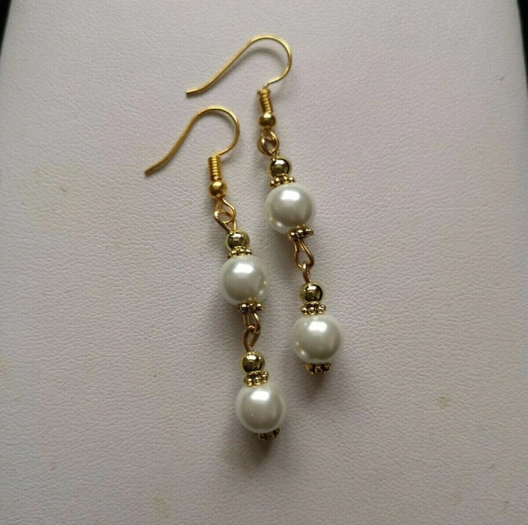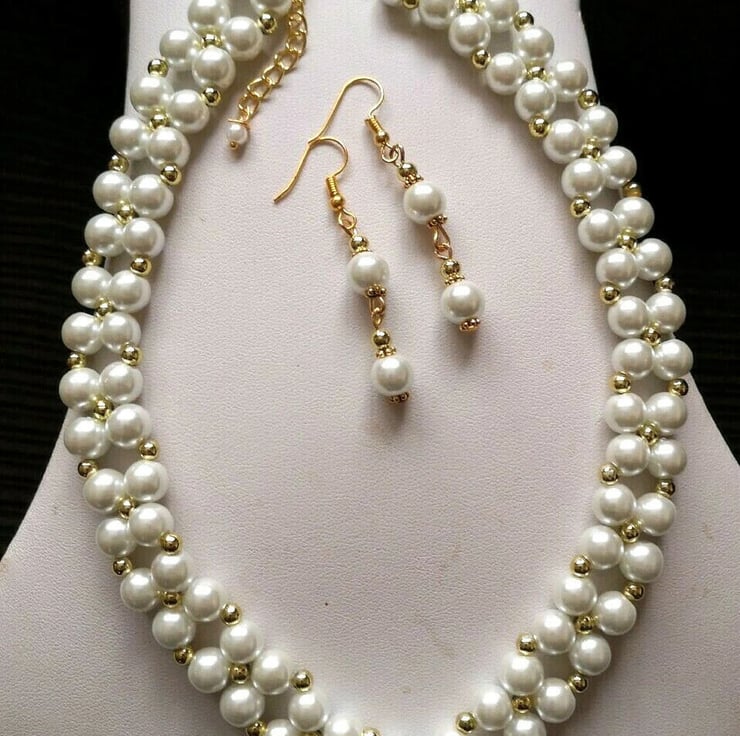 White Pearl & Gold Bead Necklace Set earrings Beaded statement jewellery womens