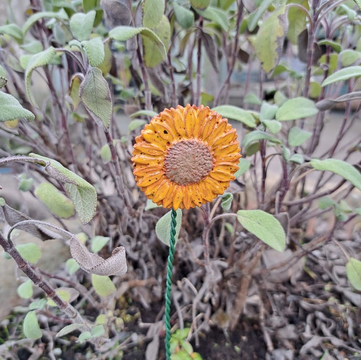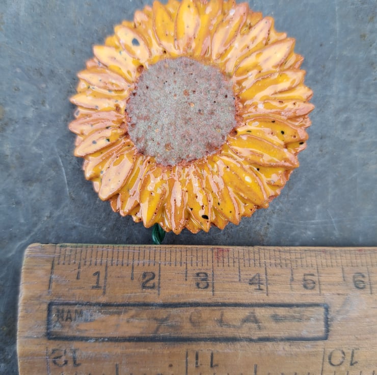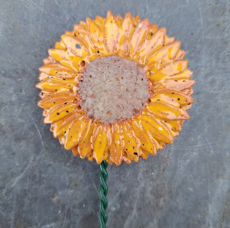 Ceramic Sunflower, handcrafted here at the Station Cat Pottery.