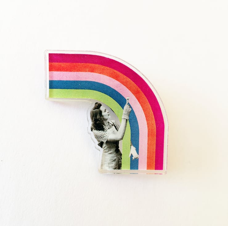 A retro rainbow brooch full of positivity. No matter what life throws at you, paint a rainbow!