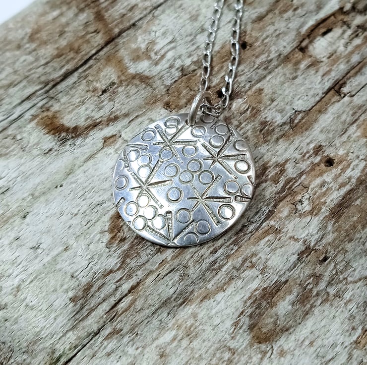 I have created this beautiful pendant from classic sterling silver to which I have applied an attractive hand stamped design.