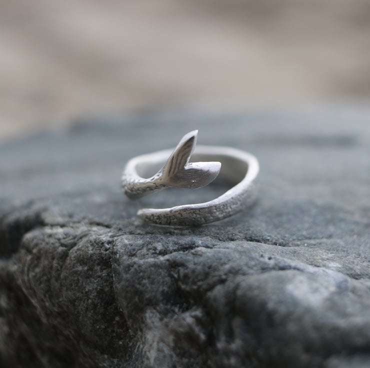 Made to order - This is an adjustable sterling silver ring with a little fishtail wrapping around the whole piece. Evoking mermaids, the ocean and all things Cornwall.