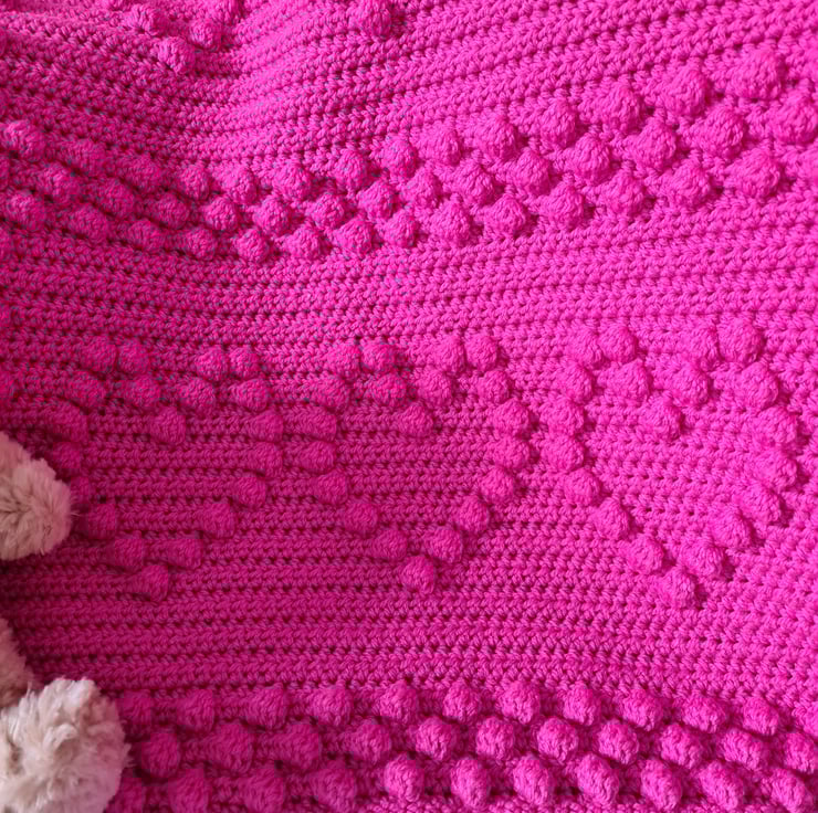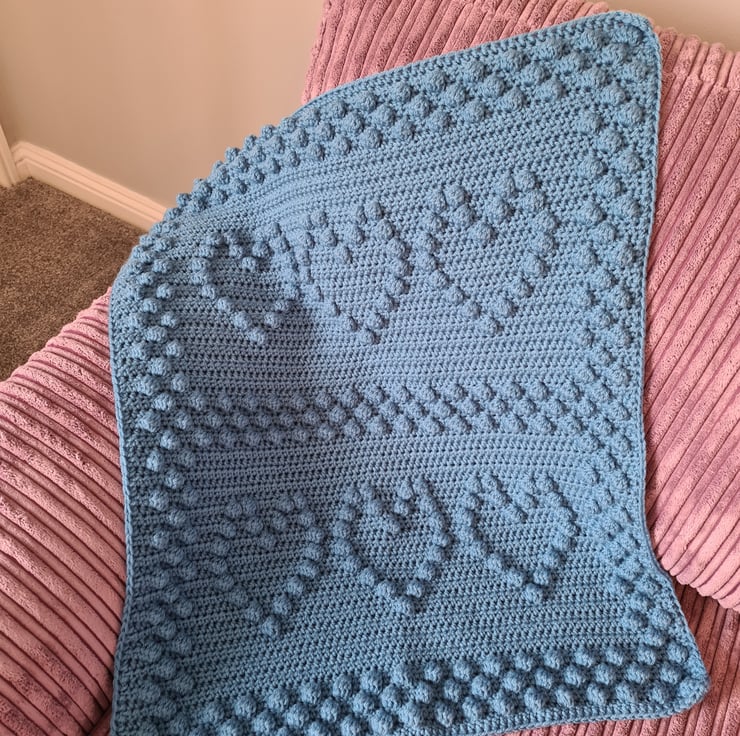 Beautiful handmade bobble heart crochet baby blanket, pram size, made to order in your choice of colour
