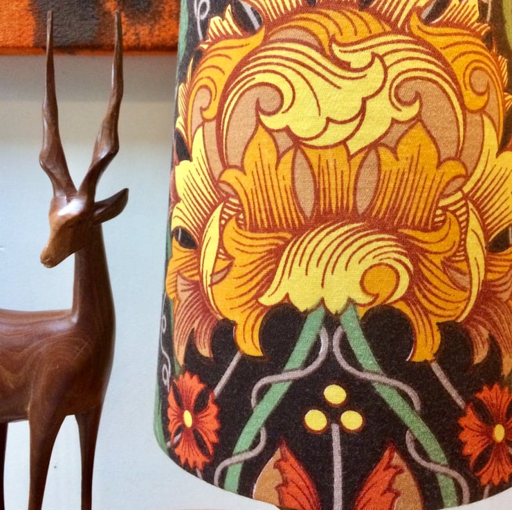 70s Art Nouveau Style Orange Green CHARTREUSE Cravendale vintage fabric Lampshade - a bold feature fabric for a lampshade in a modern or retro home.