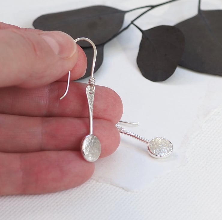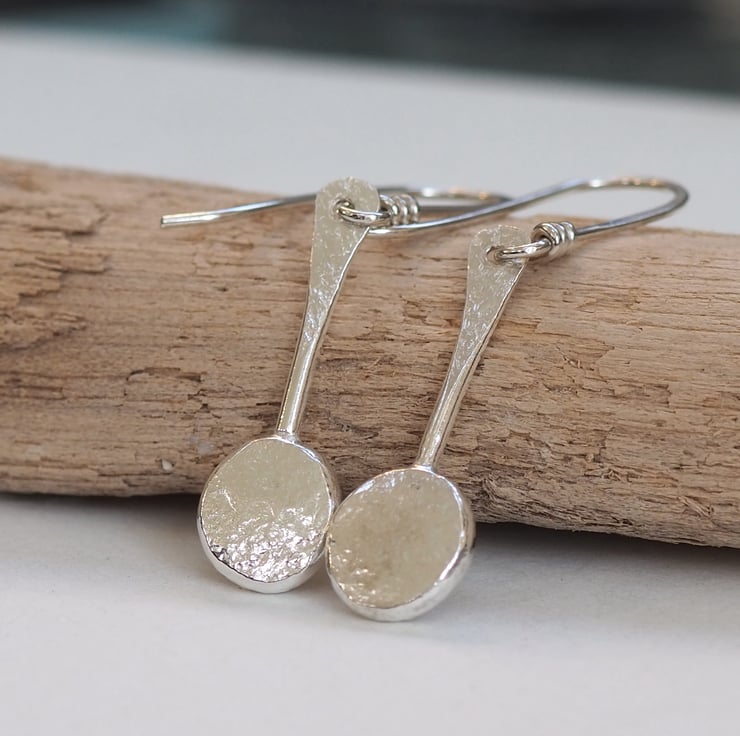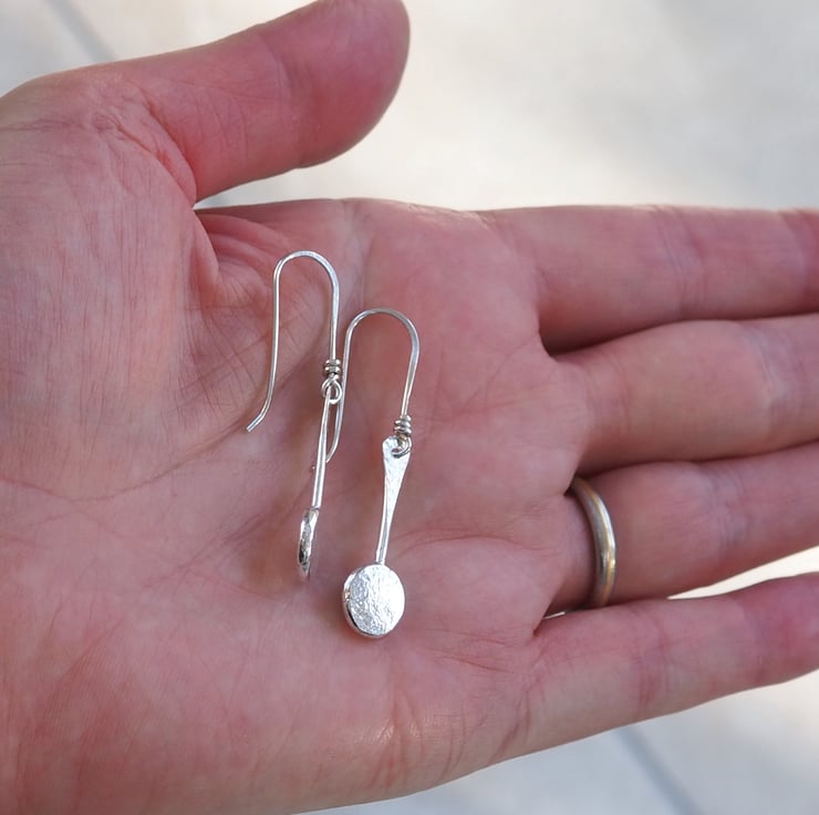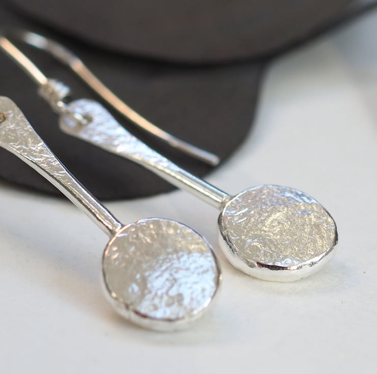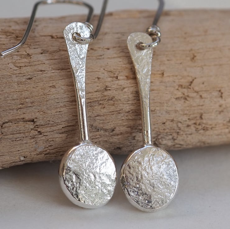 Silver hammered earrings, Handmade silver earrings, Argentium® silver drop earrings.