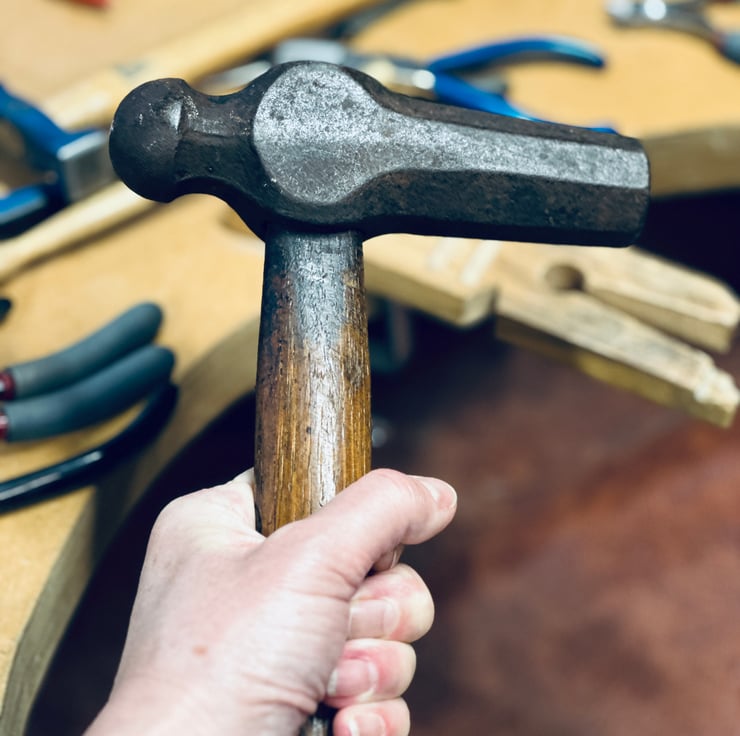 The old hammer that I used is well worn and pitted, which creates a lovely texture on the surface of the silver.