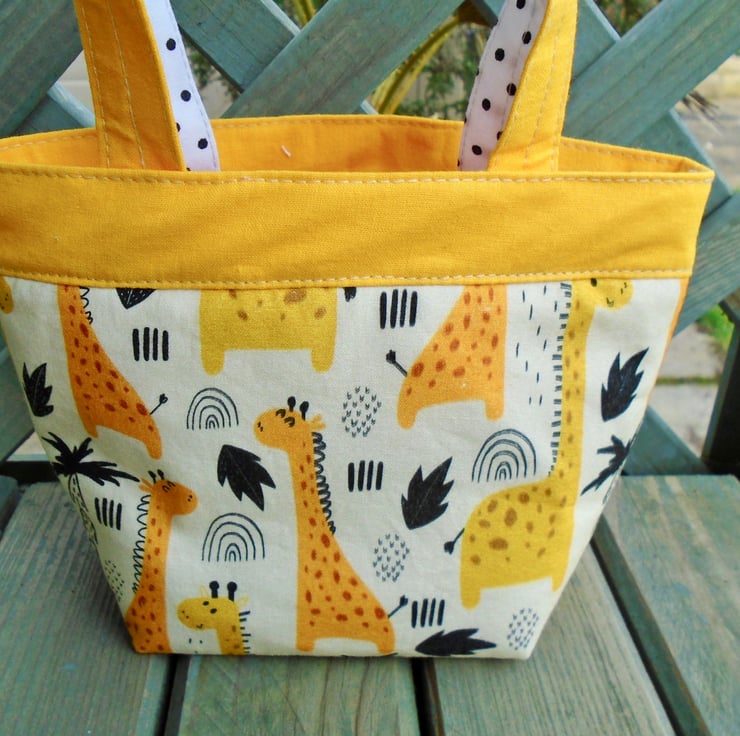 A very pretty kids handbag / shopper , / basket big enough to carry a small toy / book , or a spot of shopping .