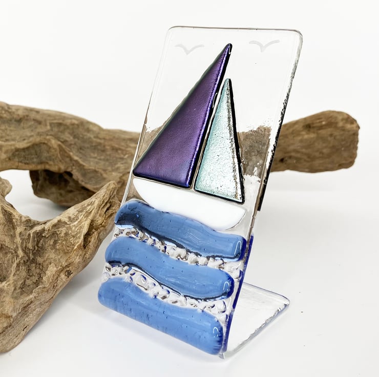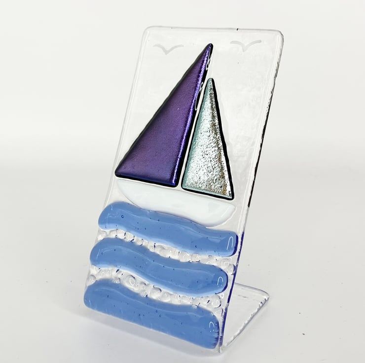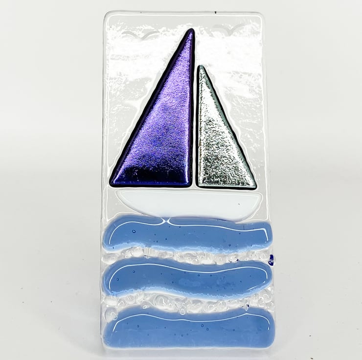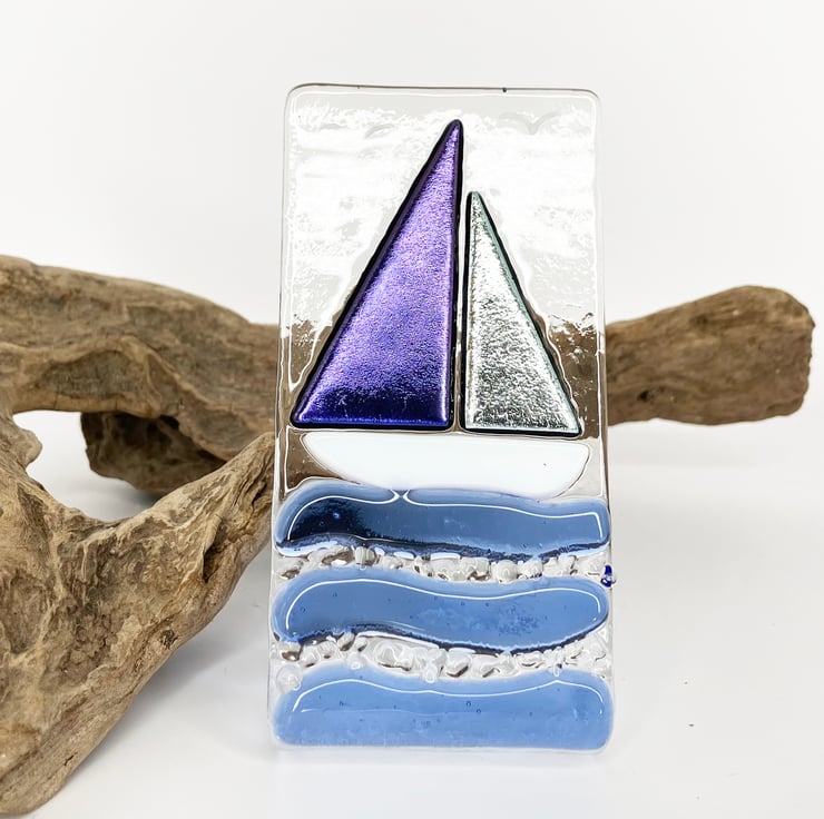Handmade Fused Glass Sailing Boat Ornament