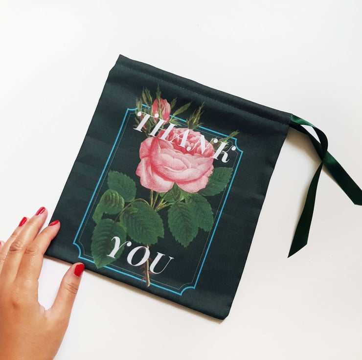 - Digitally printed botanical Rose with 'Thank You' and botanical name on the back.