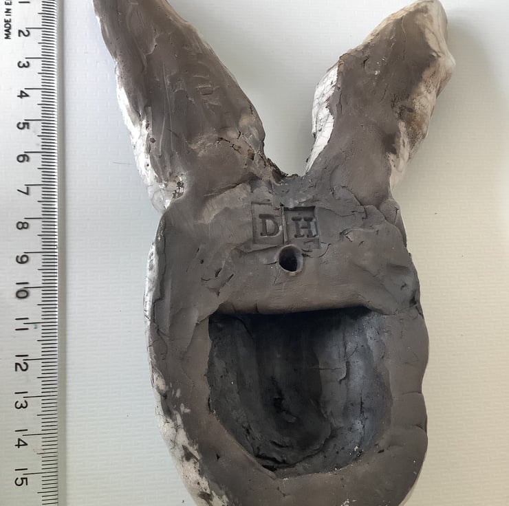 I love creating hares out of clay, there’s something about creating the shape of the head and face that naturally happens once I get the clay in my hands. This is my second hare wall sculpture and I make all my items from home perched at the dining table and then fire them at a local studio.